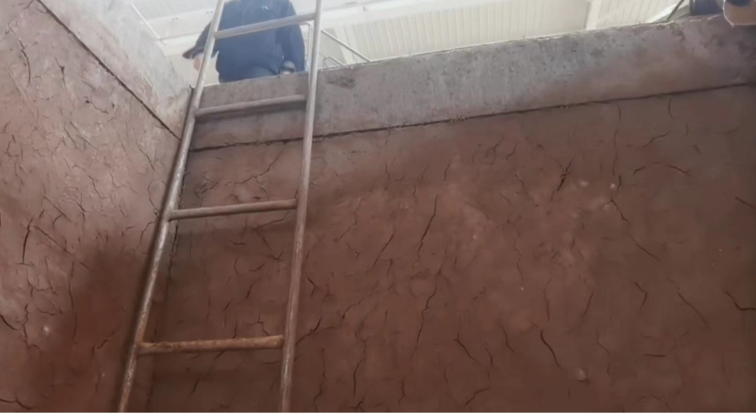 3米深的窖池里,擺著一把看著就挺結實的鐵梯子。一腳踩上去,竟然綿綿軟軟,晃晃悠悠。